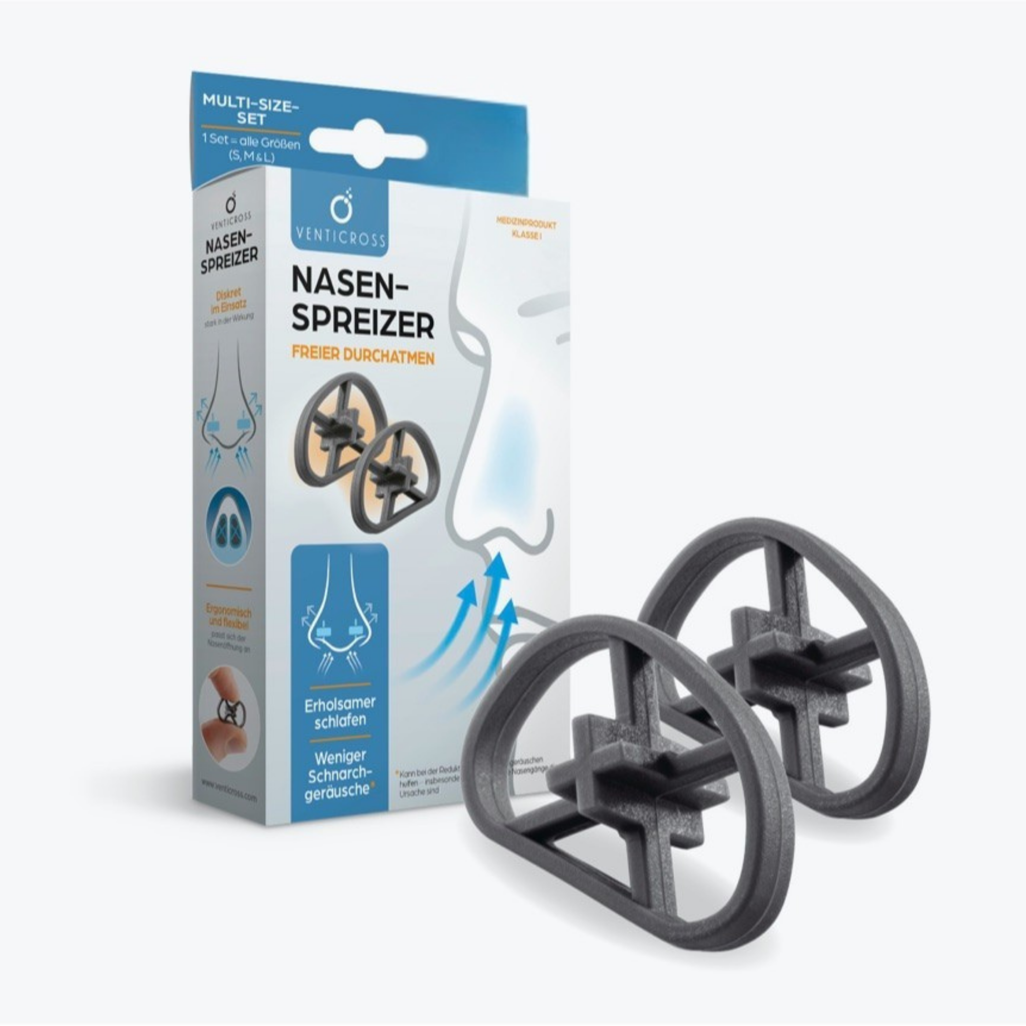Dabei legen wir besonderen Wert auf Qualität, Komfort und Alltagstauglichkeit. Venticross besteht aus flexiblem medizinischem Silikon und ist so konzipiert, dass es sich ergonomisch an die Nasenöffnung anpasst.